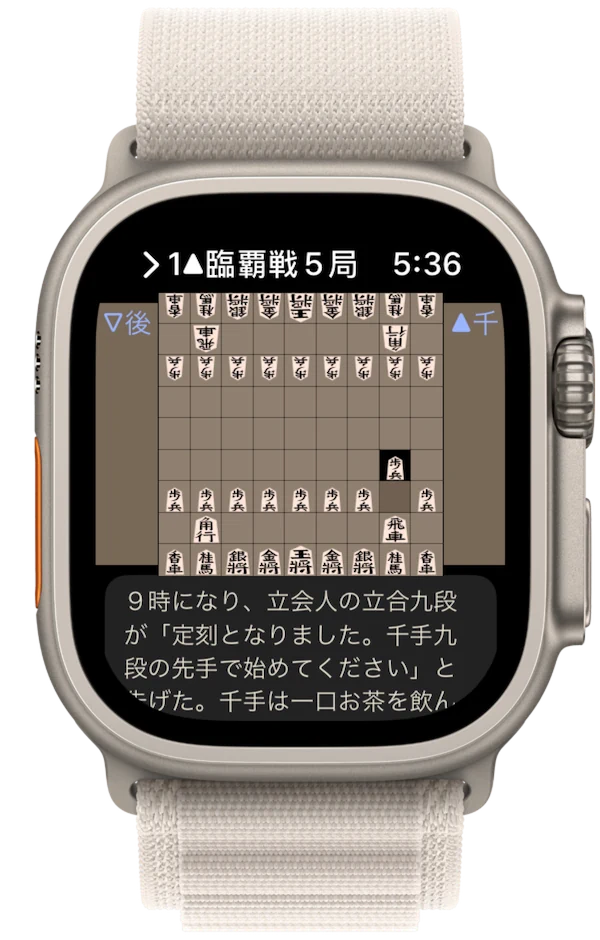 - 画面タップ・Digital Crown・手首の動きで指し手を進める・戻す